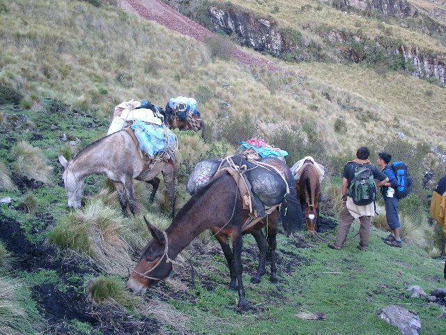 - Caballos de carga para el equipo de campamento y víveres.
